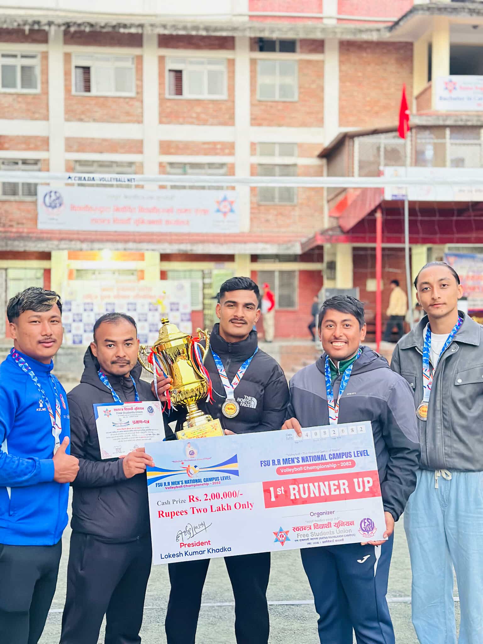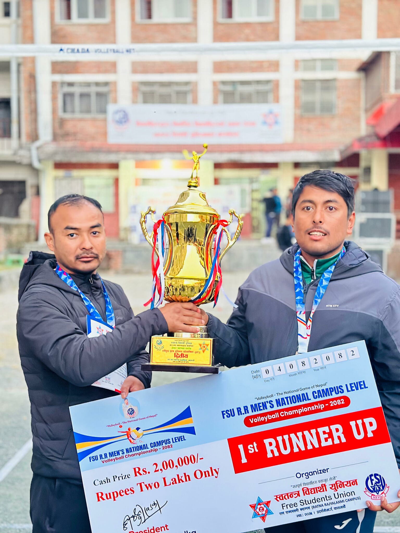 काठमाडौं — नुवाकोटको अमर ज्योती क्याम्पसले काठमाडौंस्थित आरआर क्याम्पसको स्वतन्त्र विद्यार्थी युनियन (स्ववियु) द्वारा आयोजित अन्तरक्याम्पस स्तरीय राष्ट्रिय पुरुष भलिबल प्रतियोगितामा उप–बिजेताको उपाधि हात पारेको छ।