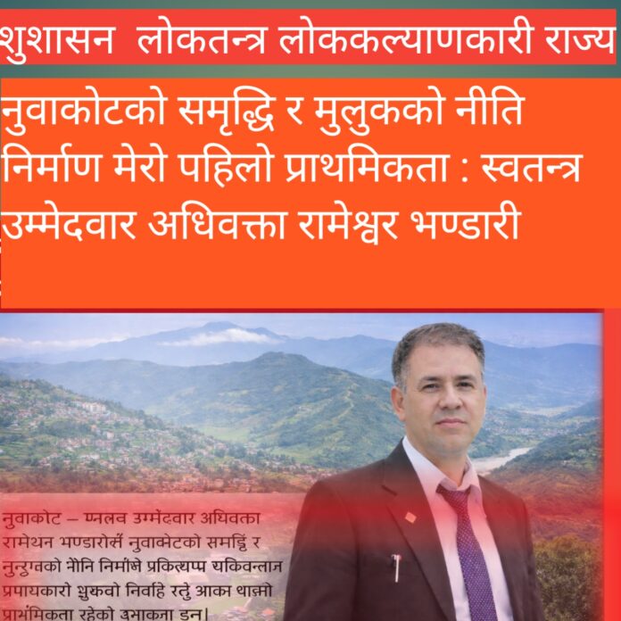 नुवाकोटको समृद्धि र मुलुकको नीति निर्माण मेरो पहिलो प्राथमिकता : स्वतन्त्र उम्मेदवार अधिवक्ता रामेश्वर भण्डारी