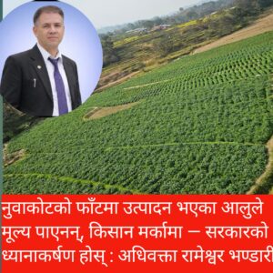 नुवाकोटको फाँटमा उत्पादन भएका आलुले मूल्य पाएनन्, किसान मर्कामा — सरकारको ध्यानाकर्षण होस् : अधिवक्ता रामेश्वर भण्डारी