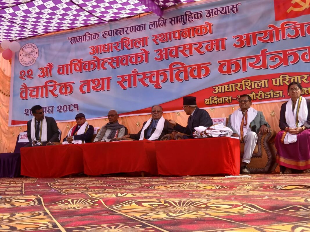 महोत्तरीको बर्दिबासस्थित आधारशीला जनकम्युनको २२ औं वार्षिकोत्सवको अवसरमा आयोजित वैचारिक तथा सांस्कृतिक कार्यक्रमलाई सम्बोधन गर्दै उहाँले यस्तो धारणा राख्नुभएको हो।
